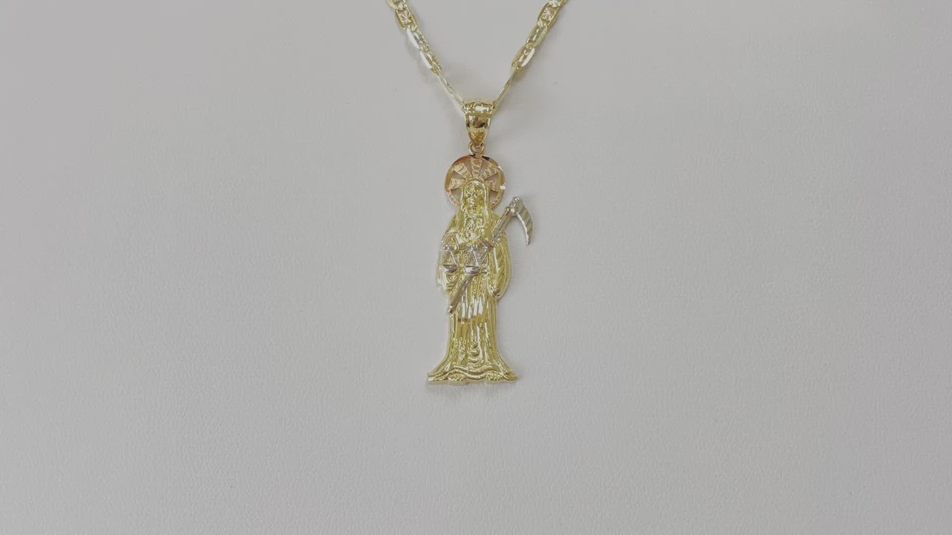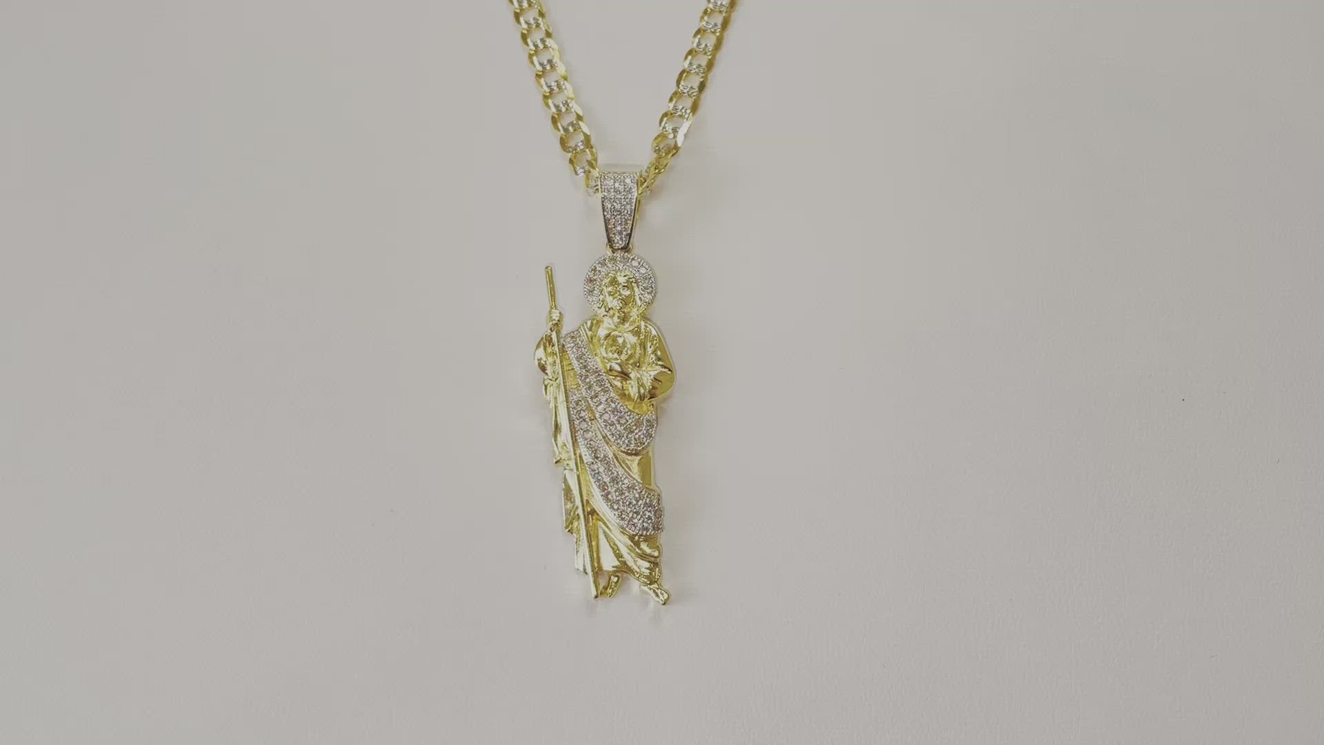 14k Gold Diamond Cut Two-Tone Gold San Judas Cz Chain