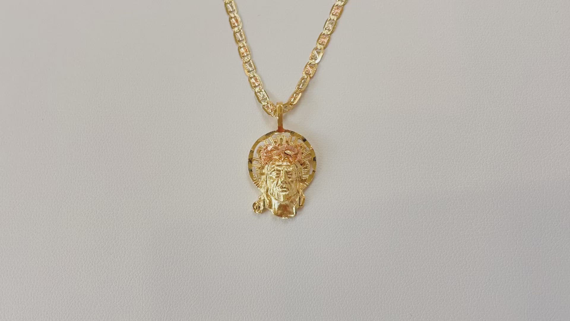 14k Gold Tri-Color Gold Jesus Head Necklace