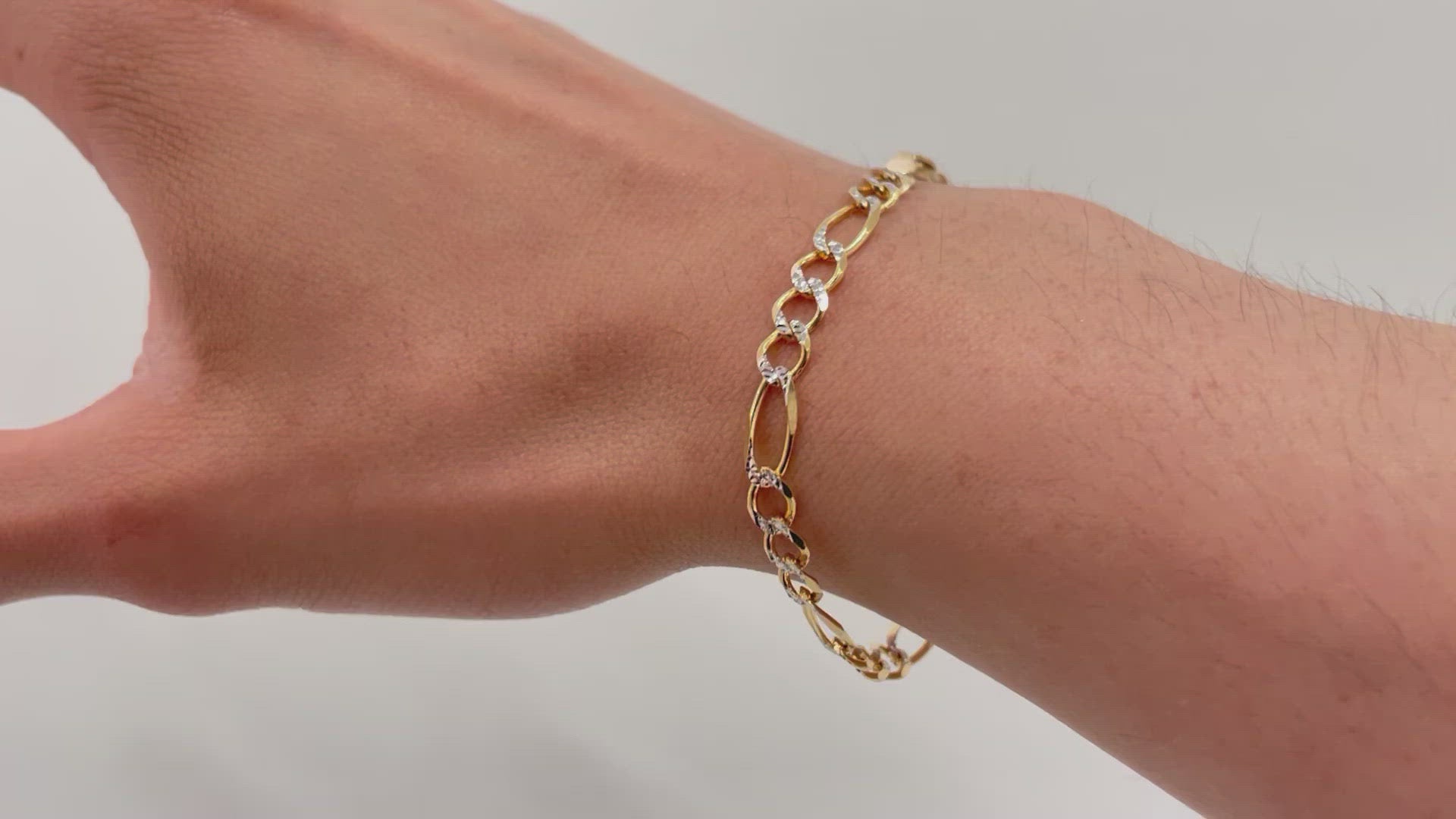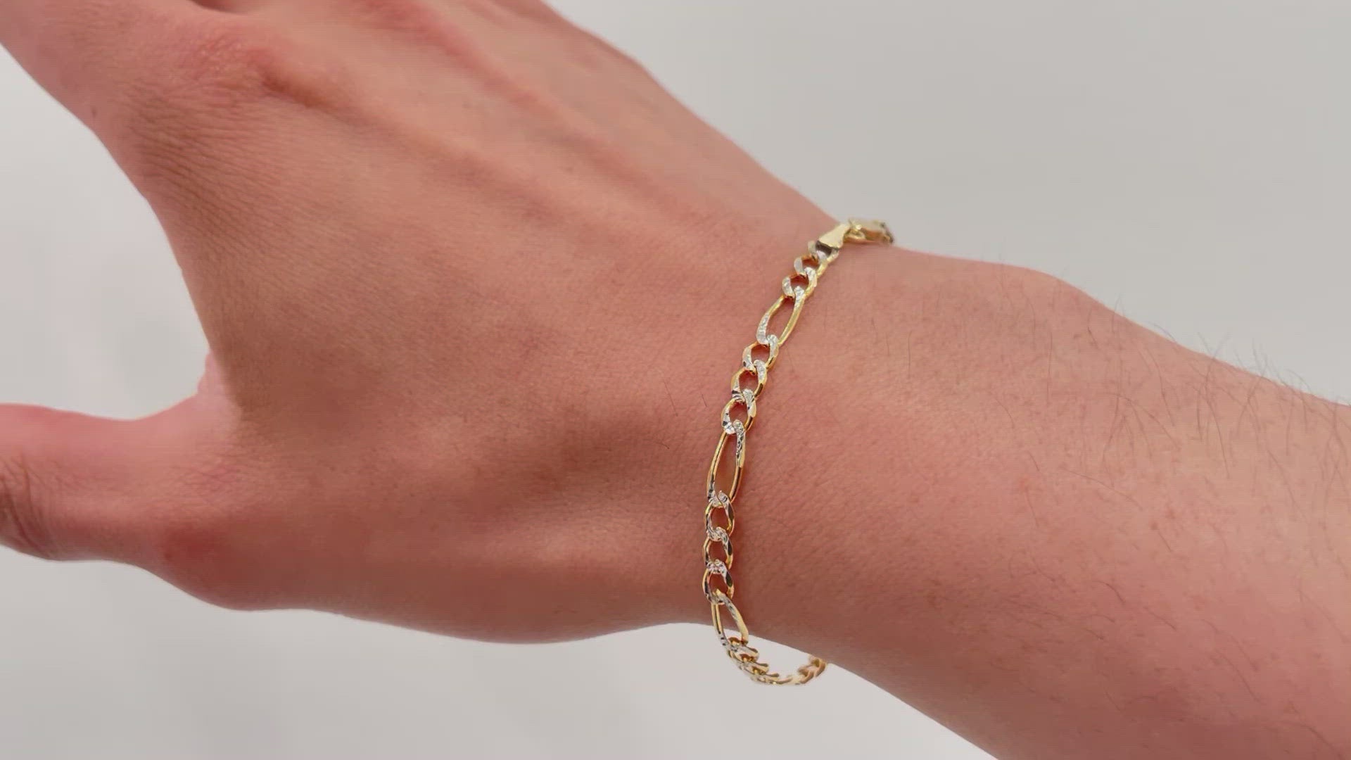 Real 14k Gold Diamond Cut Figaro Bracelet - 4mm