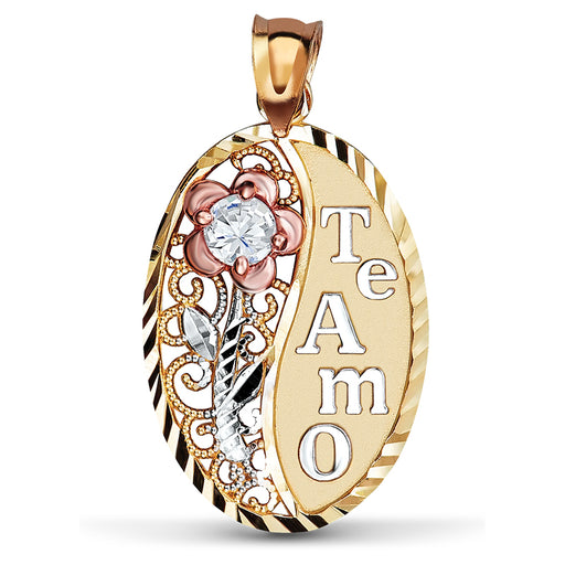 14k Gold Tricolor Te Amo Cz Pendant Your 14k Gold Tricolor Te Amo Cz Pendant has been carefully crafted to last you a lifetime. Avoid the hassle ...