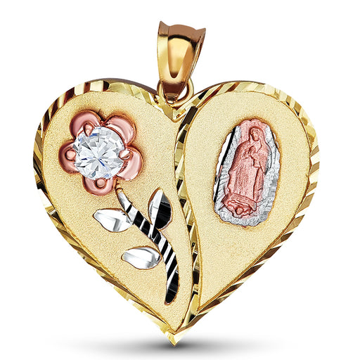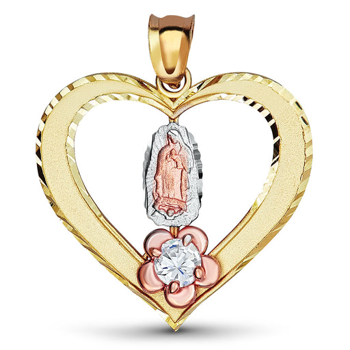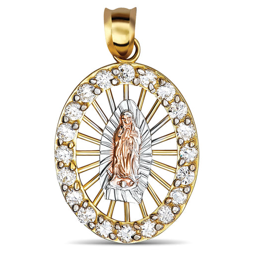 14k Gold Guadalupe Tri-Color Cz Pendant Size: 1.55in by .6in Your 14k Gold Guadalupe Tri-Color Cz Pendant has been carefully crafted to last you ...