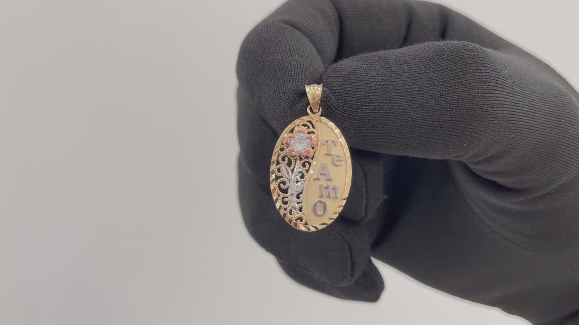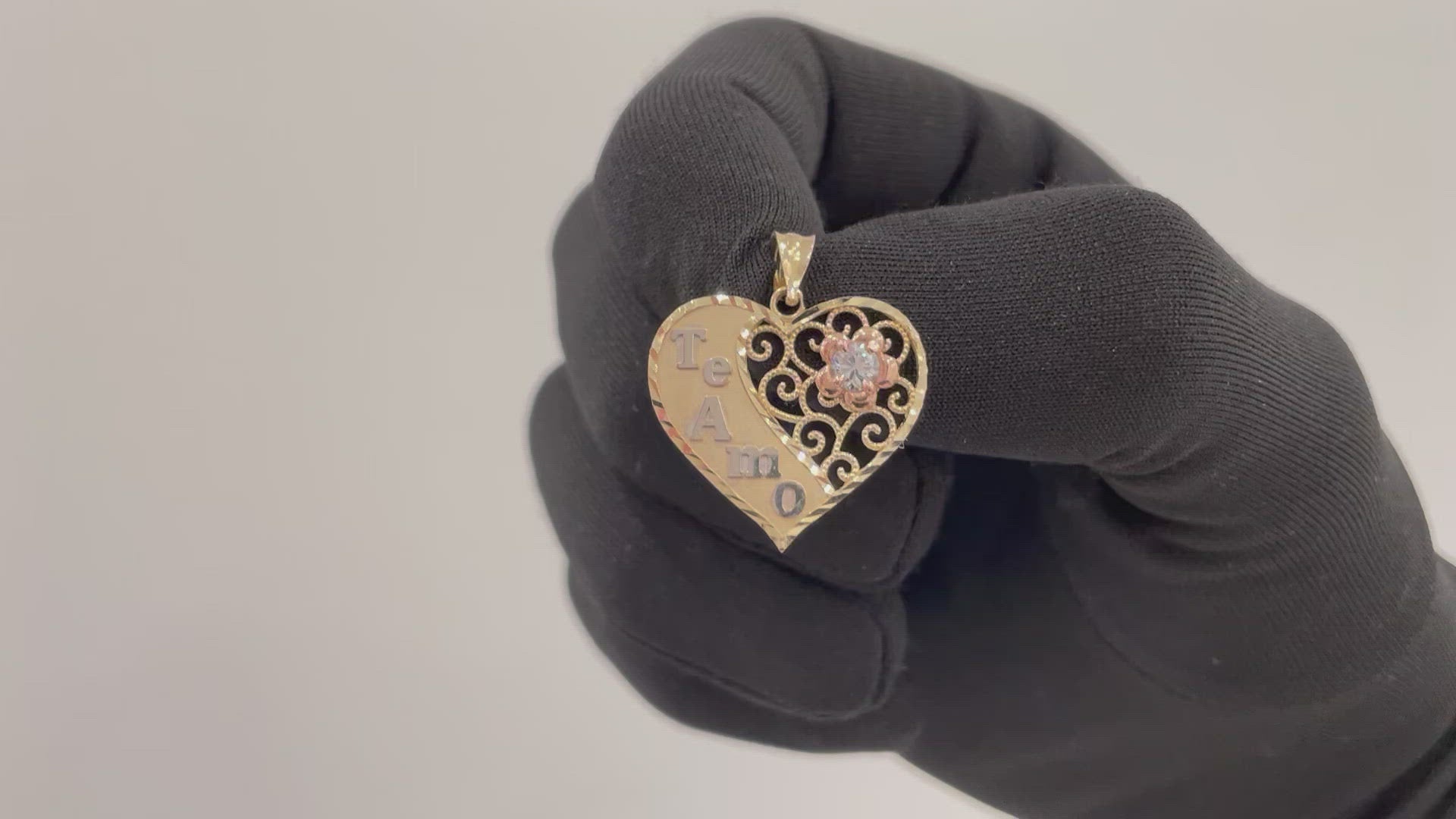 14k Gold Tricolor Te Amo Heart Cz Pendant