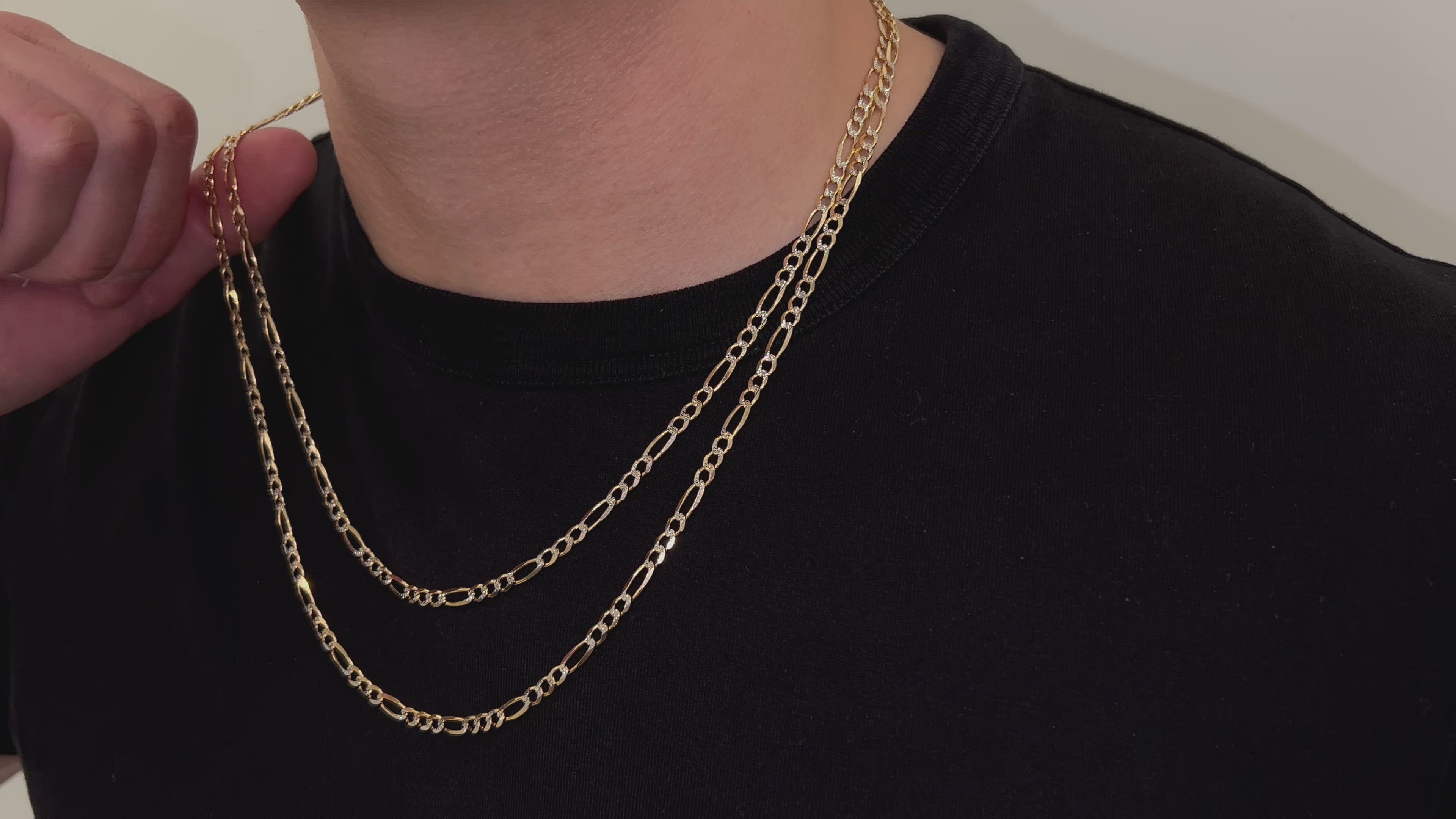 Real 14k Gold Diamond Cut Figaro Chain - 4mm